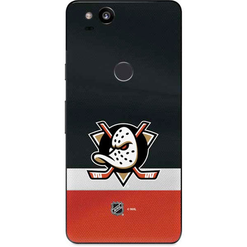 Highlight your new Google Pixel 2's High Def screen with the official Anaheim Ducks Jersey vinyl decal. The Anaheim Ducks Jersey Google Pixel 2 skin is a must-have accessory if you're looking to show off your Anaheim Ducks pride. Precision cut to fit around the Pixel 2's new rear camera and fingerprint scanner.