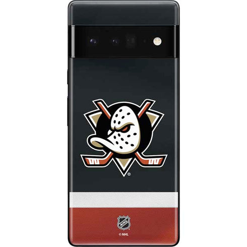 Cover and protect your Google Pixel 6 Pro smartphone with Skinit's Anaheim Ducks Jersey decal skin. Each Anaheim Ducks skin for Google Pixel 6 Pro is printed with vivid 3D Print Color Technology, meaning a vibrant graphic on top of your Pixel 6 Pro you'll never want to take off.