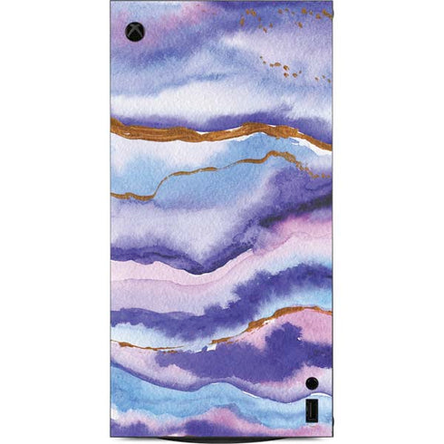 The "Blue Violet Watercolor Geode" XBox Series X Digital Edition Console Skin consists of a blue and purple geode watercolor design with vibrant injections of gold color that elegantly ties it together. Add a whimsical, stylish touch to your XBox Series X Digital Edition Console with the "Blue Violet Watercolor Geode" XBox Series X Digital Edition Console Skin from Skinit. Wrap your Microsoft Xbox Series X Digital Edition video game console with the Blue Violet Watercolor Geode 3M vinyl decal skin from Skinit. Our Xbox Series X Digital Edition Blue Violet Watercolor Geode decals are a must-have gaming accessory to will make your gaming style stand out and keep your Series X Digital Edition console looking fresh and brand new. Add style and protection to your Xbox console and buy this Blue Violet Watercolor Geode Xbox Series X Digital Edition Console skin today!
