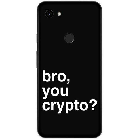 Bro you crypto? This humorous crypto Google Pixel Skin is a fun way to show off your passion for your cryptocurrency investments. This Crypto Google Pixel skin is just what your Google smartphone needs! If you want a Crypto Google Pixel accessory that's thin, protective, but not as bulky as a typical phone case, the Bro You Crypto decal skin is just for you. Cut to fit Google's 2019 Pixel 3a, this Crypto skin makes for a must-have addition to your Pixel phone. All of our Pixel skins are made of premium 3M vinyl for long lasting quality that won’t damage or leave sticky residue on your phone.