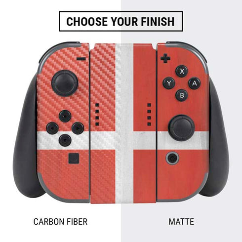 Elevate your Nintendo Switch console and controller to a whole new level with the Denmark Flag Distressed vinyl decal skin. The Denmark Flag Distressed Nintendo Switch skin is the perfect accessory for any gamer looking to switch it up and add personal style to both their console and controller.