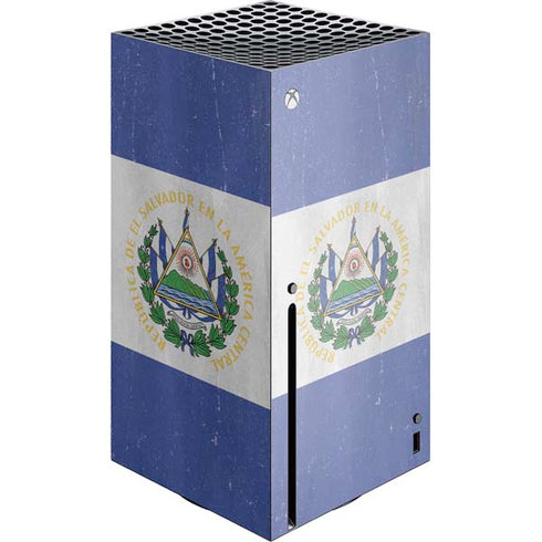 Show your patriotic pride with the El Salvador Flag Distressed Xbox Series X Skin. Featuring the iconic flag of El Salvador in a bold and stylish distressed design, this skin is perfect for gamers who want to show off their love for their country. The high-quality vinyl material ensures a precise fit and easy application, while also protecting your console from scratches and dust. With a variety of cutouts, you can easily access all ports and functions without any hassle. This El Salvador Flag Distressed Xbox Series X Skin is the ultimate way to personalize and protect your gaming console while showcasing your national pride.