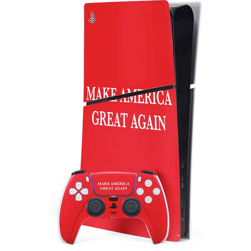 Show your patriotic spirit and support for the USA with the Make American Great Again design customized on PlayStation PS5 Skins. This unique design features the iconic red hat and bold white lettering that has become a symbol of American pride. With this skin, you can transform your PS5 into a statement piece that showcases your love for your country. The high-quality materials ensure a perfect fit and protect your console from scratches and dust. Stand out from the crowd and let your PlayStation reflect your patriotism with the Make American Great Again PS5 Skin.