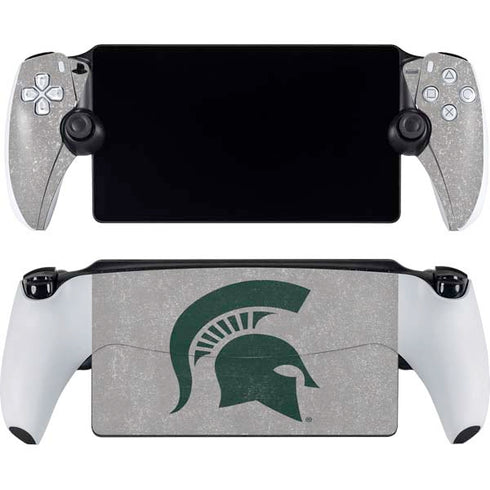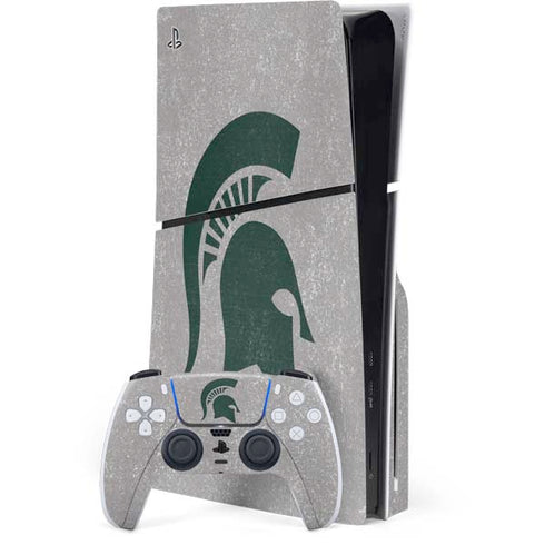 Elevate your gaming with the Michigan State University Grey Spartans Logo customized PlayStation PS5 Skin. Show your school pride while protecting your console from scratches and wear. Crafted with precision and featuring the iconic MSU Spartans logo in a sleek grey design, this skin adds a touch of sophistication to your gaming setup. Made from high-quality vinyl, it is easy to apply and leaves no residue upon removal. Experience unbeatable style and maintain the pristine condition of your PS5 with this exclusive Michigan State University Grey Spartans Logo Skin.