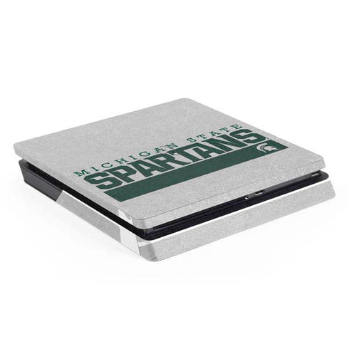 Show off your love for the Michigan State University Spartans with our Marquee design customized on PlayStation PS4 Skins. This officially licensed design features the iconic Spartan logo and team colors, making it the perfect addition to any Spartan fan's gaming setup. Our high-quality vinyl skins are easy to apply and remove, leaving no residue behind. Protect your PS4 from scratches and dust while showing off your team pride with this durable and stylish skin. Whether you're a student, alumni, or just a die-hard fan, this Michigan State University Spartans Marquee PS4 Skin is a must-have for any Spartan supporter.