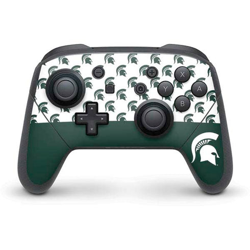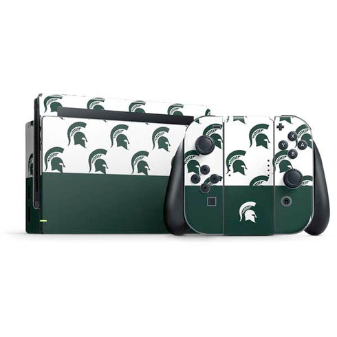 Show off your school spirit with the Michigan State University Spartans MSU Split design customized on Nintendo Skins. This design features the iconic Spartan helmet logo split down the center, showcasing both the traditional green and white colors of the Spartans. Made from high-quality vinyl, these skins provide a durable and stylish protective layer for your Nintendo device. Whether you're a student, alumni, or just a dedicated fan, this MSU Split design is a must-have accessory for any Spartan supporter. With easy application and a perfect fit, Skinit's Nintendo Skins let you proudly display your MSU pride while keeping your device safe and looking great. Go Spartans!