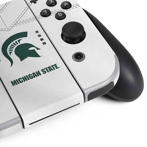 Upgrade the look on your new Nintendo Switch OLED console and controller with the Michigan State University White Jersey skin by Skinit. Each Michigan State University Nintendo Switch OLED (2021) Bundle skin is made to perfectly wrap around your Switch OLED console and controller, so your gaming style can really stand out.