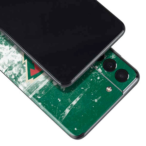 The Skinit Minnesota Wild Frozen Galaxy S21+ 5G decal skin is the perfect way to complement your new Galaxy smartphone. This Minnesota Wild Galaxy S21+ 5G skin is printed with 3D Vivid Print Technology, meaning a flawless, high-gloss and scratch-resistant top coat. The 3M adhesive makes our skins both durable yet thin and lightweight all at once while also providing simple and hassle-free application and removal process. Make the Minnesota Wild Frozen Galaxy S21+ 5G skin yours today!