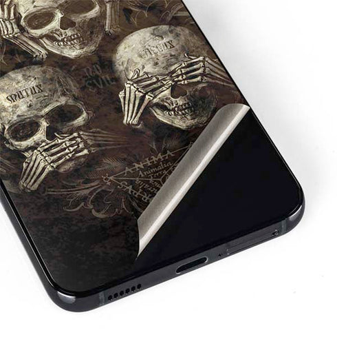 The three skulls on this Samsung Galaxy Skin embodies the proverbial principle, "see no evil, hear no evil, speak no evil". The No Evil Samsung Galaxy Skin will not only add a sleek layer of protection to your Samsung Galaxy but will show off your unique sense of style at the same time. Protect your Samsung Galaxy without the bulk of a typical phone case with a Brown skin from Skinit. Made to perfectly fit on back of your Samsung Galaxy, the No Evil skin is not just ultra-thin, but durable at the same time. Printed with premium 3M vinyl, you'll love how the No Evil skin looks on your Samsung Galaxy!