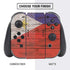Elevate your Nintendo Switch console and controller to a whole new level with the Philippines Flag Dark Wood vinyl decal skin. The Philippines Flag Dark Wood Nintendo Switch skin is the perfect accessory for any gamer looking to switch it up and add personal style to both their console and controller.