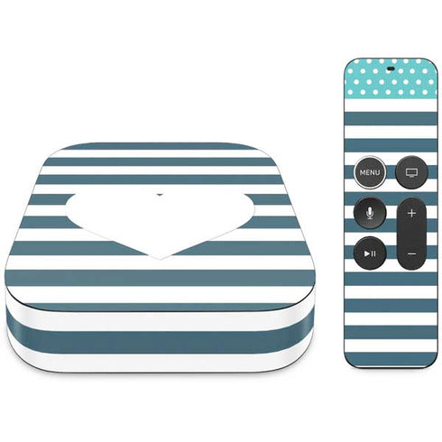 Even your Apple TV can now have its own personalized touch with Skinit's Polka Dots and Stripes Heart in Blue Apple TV decal skin! Being durable, thin, and lightweight all at the same time, each Stripes Apple TV skin is a simple way to add a sleek, glossy look to your Apple TV. Printed with a high-gloss, UV-protected finishing coating, this Stripes Apple TV sticker will look great, last a long time & shield your Apple TV from everyday dust, dirt & minor scratches. All Stripes skins for Apple TV is made to fit the following Apple TV models: