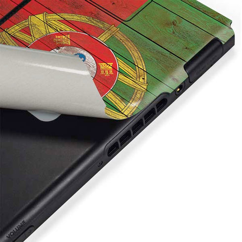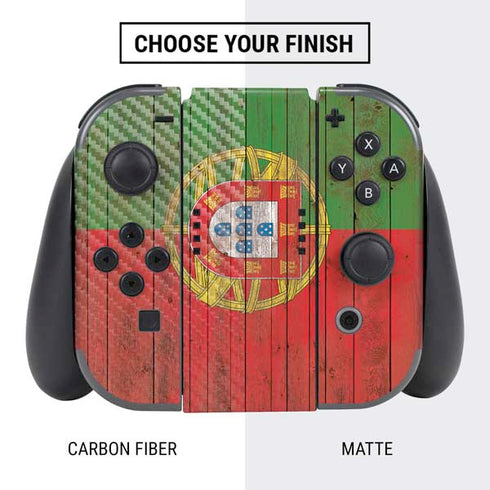 Elevate your Nintendo Switch console and controller to a whole new level with the Portuguese Flag Dark Wood vinyl decal skin. The Portuguese Flag Dark Wood Nintendo Switch skin is the perfect accessory for any gamer looking to switch it up and add personal style to both their console and controller.