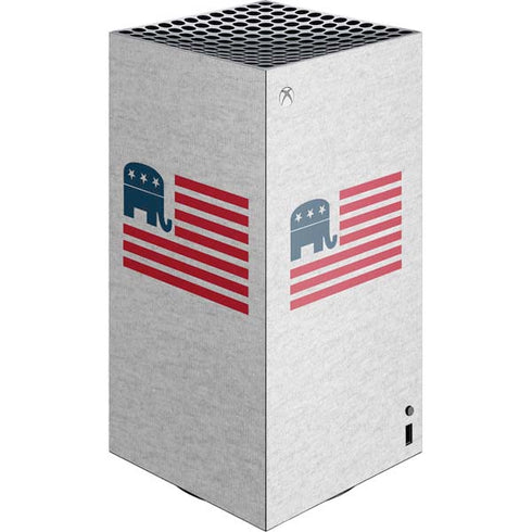 Show off your Republican pride with our Republican American Flag design customized Xbox Series X Skin. This patriotic skin features the iconic American flag design, draped in bold red, white, and blue colors, along with the unmistakable Republican elephant emblem prominently displayed. Made from high-quality vinyl, this skin provides premium protection against scratches and dust, ensuring your Xbox Series X stays in pristine condition. With our easy-to-install and precision-cut design, you can quickly apply this skin to your console without any hassle. Enhance your gaming experience and showcase your Republican values with our Republican American Flag Xbox Series X Skin, a must-have accessory for any proud Republican gamer.