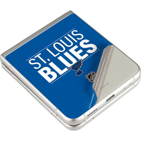 Get your Galaxy Z Flip4 5G dialed in for hockey season with the St. Louis Blues "Lineup" Galaxy Z Flip4 5G Skin. The NHL® and Skinit teamed up to bring you this victorious Blues Galaxy Z Flip4 5G Skin, featuring St. Louis' bold blue and white team colors. Make the St. Louis Blues "Lineup" Galaxy Z Flip4 5G Skin yours today. Enhance the look on your Galaxy Z Flip4 5G up a notch with the St. Louis Blues Lineup decal skin from Skinit. This St. Louis Blues Z Flip4 skin is made to flawlessly fit on the back of your phone and is printed with 3D Vivid Print Technology, meaning a bold and stunning finish. With a simple and hassle-free application and removal process, you'll never have to worry about sticky residue being left behind. Buy the St. Louis Blues Lineup Galaxy Z Flip4 5G skin online from Skinit today and Make It Yours!