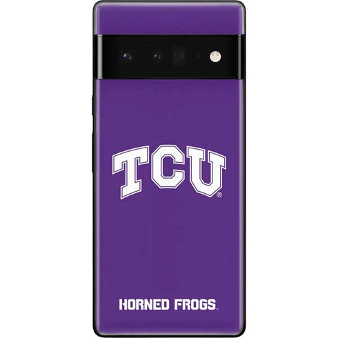 Introducing the Texas Christian University Pixel 6 Pro Skin! Show off your Horned Frog pride with this premium-quality Skin designed exclusively for TCU fans. Made from durable, high-quality materials, the Texas Christian University Skin is designed to protect your Pixel 6 Pro while displaying your school spirit in style. Cover and protect your Google Pixel 6 Pro smartphone with Skinit's TCU Horned Frogs decal skin. Each Texas Christian University skin for Google Pixel 6 Pro is printed with vivid 3D Print Color Technology, meaning a vibrant graphic on top of your Pixel 6 Pro you'll never want to take off.