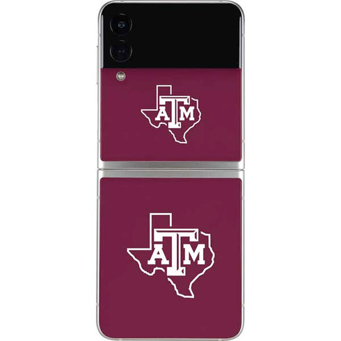 Officially Licensed Texas A&M Galaxy Z Flip4 5G Skin Skin fits the 2022 Apple Samsung Galaxy Z Flip4 5G Won't interfere with the camera or any buttons or ports on your smartphone Printed in ultra-vivid, 3D Print Color Technology Made in the USA