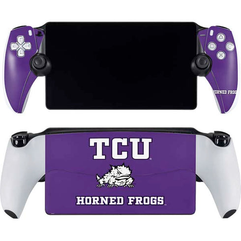 Show off your TCU Horned Frogs pride with our officially licensed Texas Christian University Mascot design customized on PlayStation PS5 Skins. This exclusive design features the iconic TCU Horned Frogs mascot in vibrant colors and crisp details, making it a must-have for any die-hard fan. Our high-quality vinyl skins are precision cut to fit your PS5 console perfectly, ensuring a seamless and professional look. Not only do our skins provide an added layer of protection against scratches and dust, but they also give your console a personalized touch that stands out from the crowd. Elevate your gaming experience and showcase your TCU spirit with our Texas Christian University Mascot design PS5 Skins.