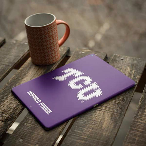 Show off your TCU Horned Frogs pride with our officially licensed Texas Christian University iPad Skin. Crafted with precision-cut technology and high-quality materials, this skin is designed to perfectly fit your device while providing protection from scratches and everyday wear and tear. The vibrant TCU Horned Frogs design adds a touch of school spirit to your iPad, making it perfect for students, alumni, and fans alike. Stand out from the crowd and let your TCU pride shine with this eye-catching iPad Skin.
