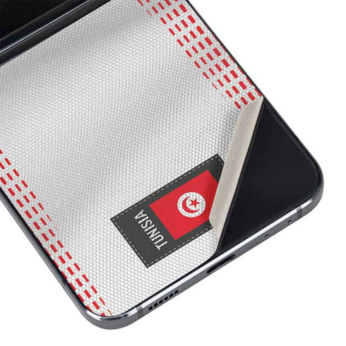 Shades of red and grey topped off with Tunisia's flag, the Tunisia "Soccer Flag" Galaxy Z Flip5 5G Skin is an essential Galaxy Z Flip5 5G accessory for any Tunisia fan. Influenced by Tunisia's national team jerseys, you'll be able to rep your home country all year long with the Tunisia "Soccer Flag" Galaxy Z Flip5 5G Skin. Elevate your Samsung Galaxy with our premium Tunisia Soccer Flag skin at Skinit.com! Our precisely crafted skins are the ultimate fusion of style and protection, designed to perfectly fit and enhance your device. Engineered with precision, our skins offer an impeccable adhesive application that ensures a seamless fit while leaving no residue upon removal. Step up your device game with Skinit's Samsung Galaxy Tunisia Soccer Flag skin and experience unparalleled protection with a touch of individuality.