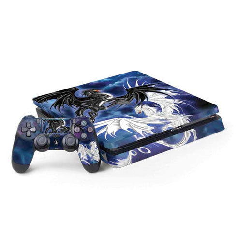 PlayStation PS4 Skins are the perfect way to customize and protect your gaming console. The Twilight Duel design, created by renowned artist Ruth Thompson, showcases a captivating fantasy scene that will truly elevate your gaming experience. This high-quality, durable skin is easy to apply and remove, allowing you to switch up your console's look whenever you want. The vivid colors and intricate details of the design make it a standout choice for any Twilight or fantasy fan. With Skinit's precision cutting and superior adhesive, you can trust that this skin will provide a seamless fit and long-lasting protection for your PlayStation PS4. Elevate your gaming style with the Twilight Duel by Ruth Thompson PlayStation PS4 Skin today.