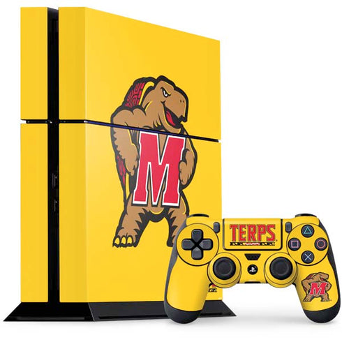 Show off your Maryland pride with this University of Maryland Terps Yellow PlayStation PS4 Skin. This officially licensed design features the bold yellow and black color scheme of the Terps, making it the perfect accessory for any die-hard Maryland fan. Our high-quality vinyl skin is easy to apply and leaves no residue, ensuring a seamless and professional look. Not only does this skin protect your PS4 from scratches and dust, but it also adds a touch of personalization to your gaming experience. Stand out from the crowd and support your favorite team with the University of Maryland Terps Yellow PlayStation PS4 Skin.