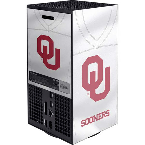Wrap your Microsoft Xbox Series X Digital Edition video game console with the University of Oklahoma White Jersey 3M vinyl decal skin from Skinit. Our Xbox Series X Digital Edition University of Oklahoma White Jersey decals are a must-have gaming accessory to will make your gaming style stand out and keep your Series X Digital Edition console looking fresh and brand new. Add style and protection to your Xbox console and buy this University of Oklahoma White Jersey Xbox Series X Digital Edition Console skin today!