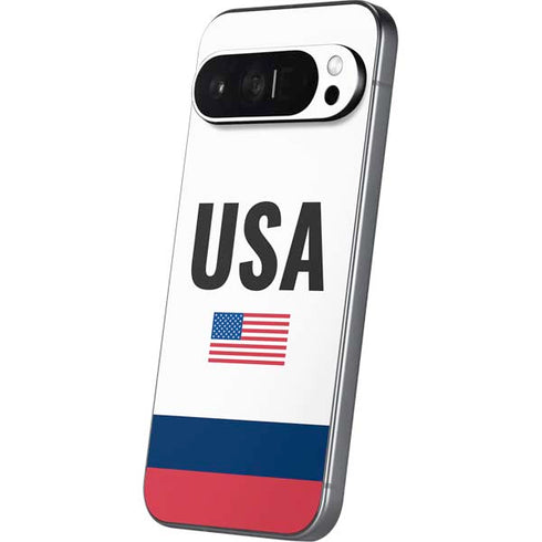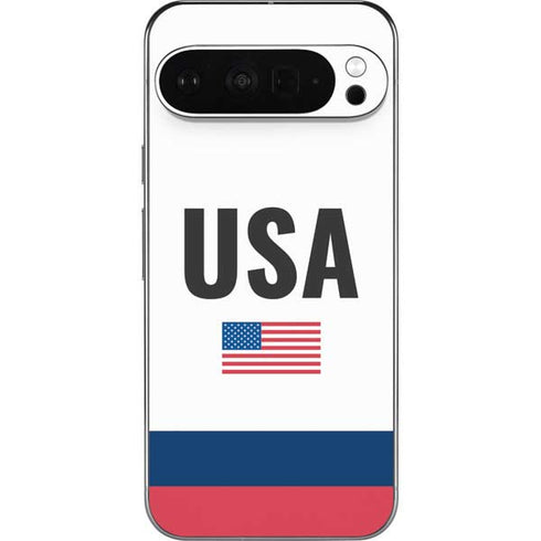 Show off your American pride with the American Flag Pixel 9 Pro XL Skin. With red and blue stripes and a bold USA logo at the top, the USA American Flag Skin is the perfect Pixel 9 Pro XL accessory to cheer on USA in the Olympics and the rest of the year. Buy the USA American Flag Pixel 9 Pro XL Skin today! Elevate your Google Pixel 9 Pro XL's aesthetics with our USA American Flag Google Pixel 9 Pro XL Skins – the epitome of style and personalization. Expertly designed to hug your device's contours flawlessly, these USA American Flag skins not only add a unique touch but also provide essential protection against daily wear and tear.