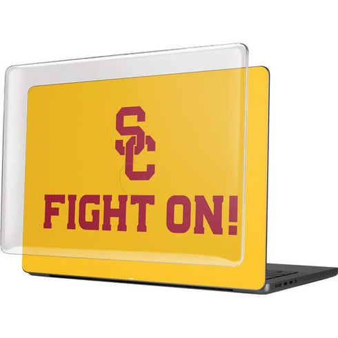 Protect your Laptop device with an Officially Licensed USC Fight On MacBook Pro 14in (2021-24) Case plus Skin. The USC Fight On in Gold Case plus Skin adds your school colors to your MacBook Pro 14in (2021-24) in style! Looking for style and protection for your 14-inch MacBook Pro? Look no further! The case + skin option from Skinit includes the USC Fight On Gold MacBook Pro 14-inch skin compatible with the 2021-24 models along with a snap-on Clear Case that covers both the top and the bottom of your MacBook. Easily apply the University of Southern California decal skin first then put the Clear case on top for a look you'll never want to take off.