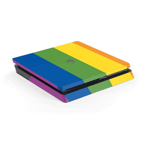 Customize your PlayStation PS4 with the vibrant and visually stunning Vertical Rainbow Flag design from Skinit.com. This eye-catching design features a vertical arrangement of bold and vibrant rainbow colors, symbolizing unity and LGBTQ+ pride. With precise cutouts for all buttons and ports, this skin is easy to apply and provides a perfect fit for your console. Made from high-quality vinyl, it offers a protective layer against scratches and scuffs, ensuring your PS4 stays in pristine condition. Express your individuality and show your support for diversity and inclusion with this Vertical Rainbow Flag design customized PS4 skin.